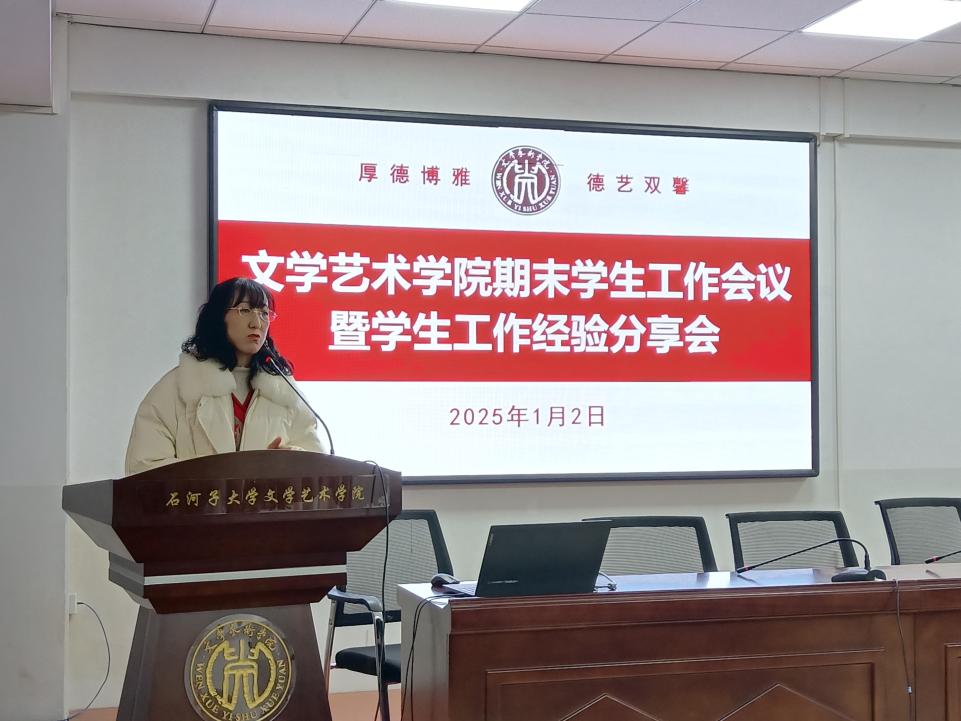 会上学生工作办公室主任赖娇以回眸2024,新葡的京集团8814学生工作十大热搜词汇为题,从思政教育、学生干部培养、学生工作队伍建设、心理健康及就业指导等方面将学生工作总结为美智、美心、美事、美人、美景等词,详细阐述了学院在促进学生全面发展方面所做的努力和取得的成效。昂沙尔·铁格斯汗代表学院团委阐述一年来院团委工作,2024年院团委举办了系列主题团日活动,丰富了学生校园文化生活;加强了团组织建设,提升了团员青年的凝聚力和战斗力;积极推进志愿服务和社会实践活动,引导学生服务社会、增长才干。