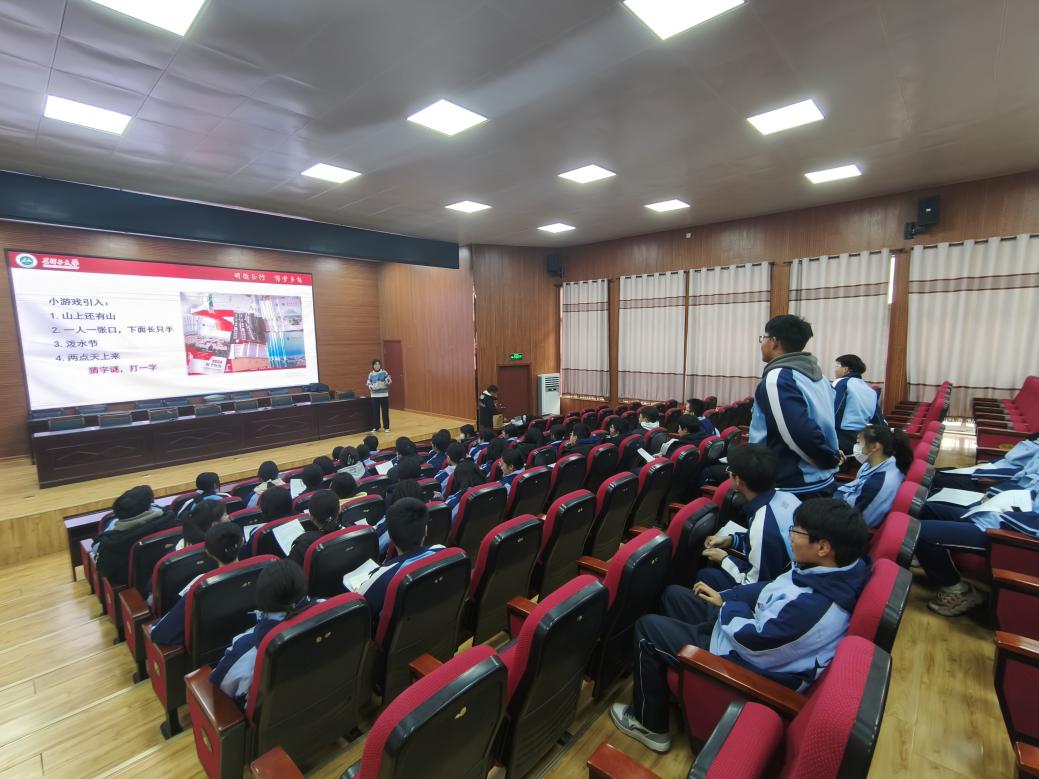 ·隋宜航同学向学生分享一些高三经验 曾杰同学在台上进行分享报考指南。