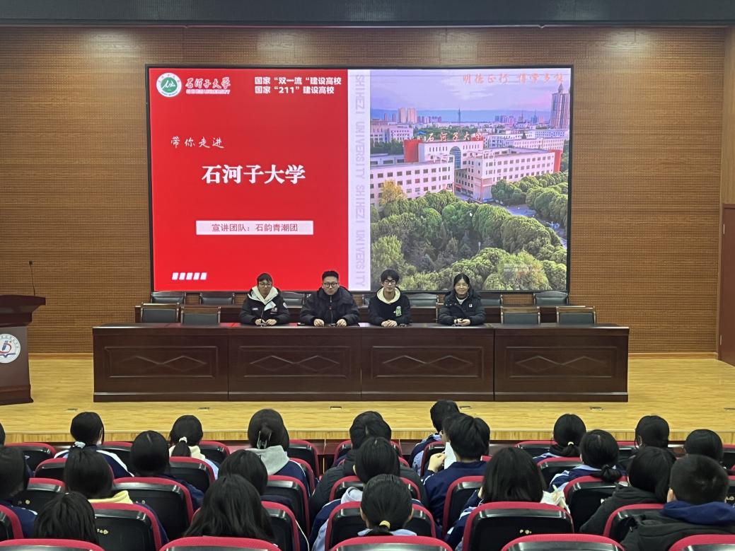 四名同学开展演讲,向母校高三学子介绍石河子大学