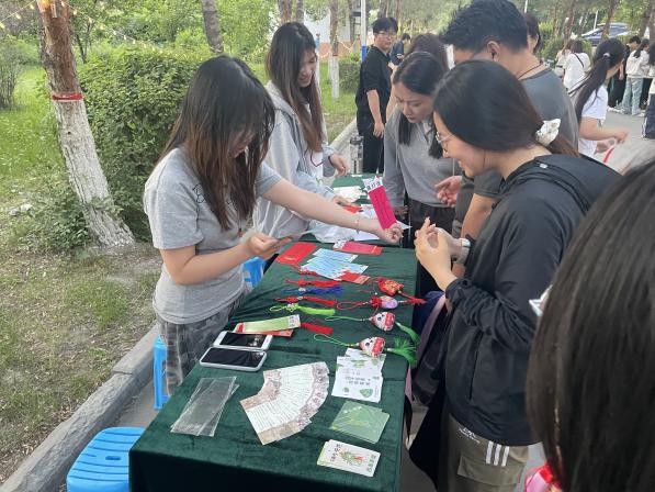 活动现场亮点纷呈。活动现场有多个特色项目。胡杨诗社和火种诗社联合开展了“佳节诗词诵读”活动,吸引了众多学生参与,大家一起诵读与端午相关的诗词,感受传统文化的魅力。翰墨缘书法社的成员们现场书写端午祝福,他们的书法作品墨香四溢,展现了传统文化的韵味。