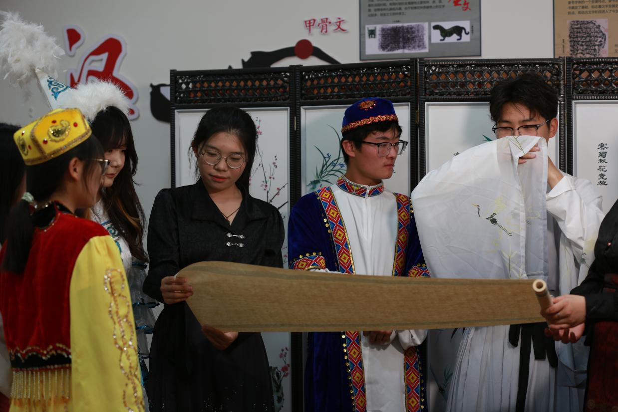 活动压轴环节“屈原与少数民族创意情景展示”别出心裁,学生身着传统服饰搭建特色场景,将屈原文化符号与少数民族元素创新融合,以沉浸式体验生动演绎中华民族多元一体格局。