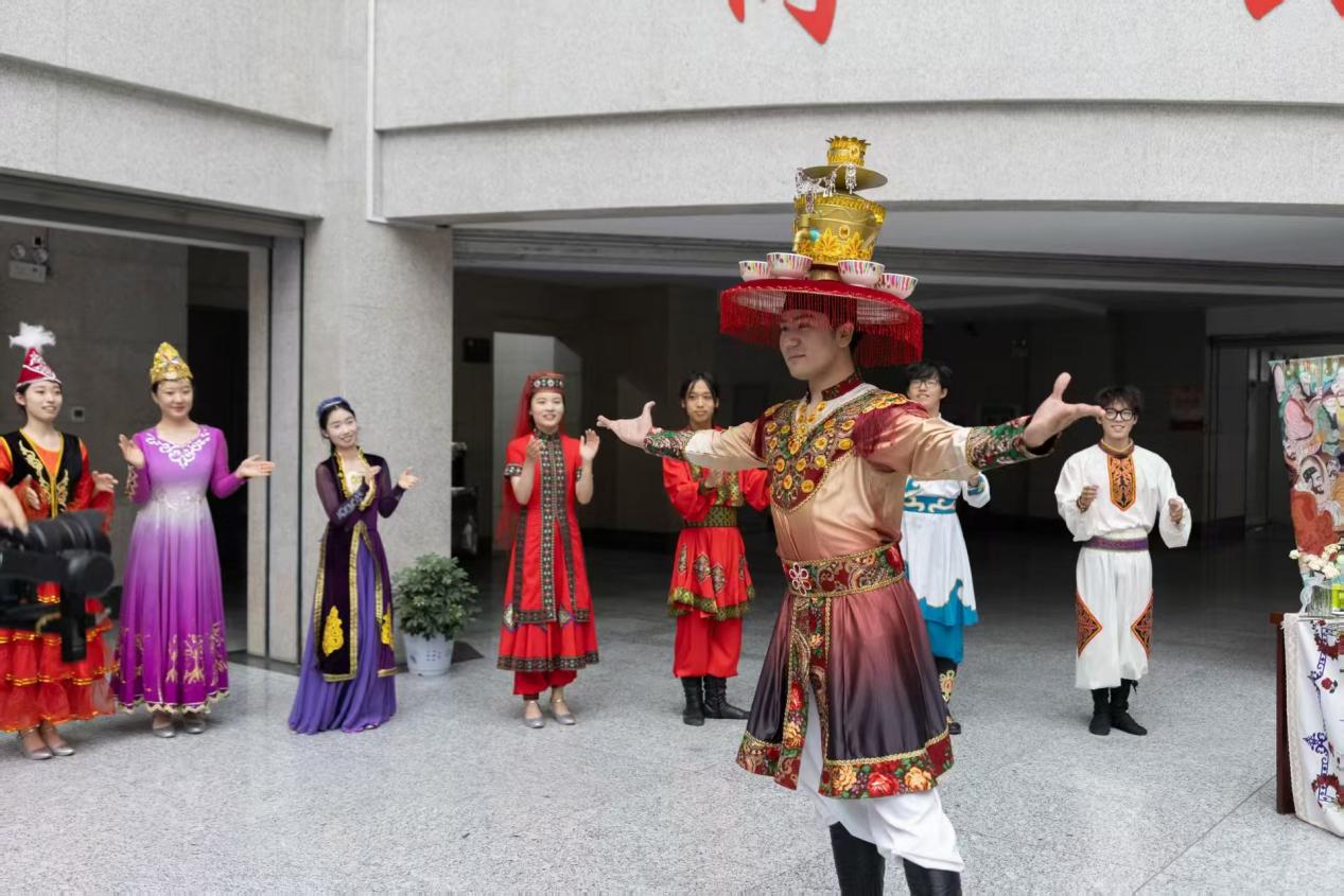 6月27日晚7点40分,一场别开生面的“军垦舞韵,丝路薪传——新疆少数民族舞蹈沉浸式体验”活动在石河子大学博学楼A区大厅热烈举行。此次活动由舞蹈教育专业全体教师和学生共同参与,以“地域文化+舞蹈艺术+兵团精神”为脉络,精心设计“哈密、吐鲁番、乌鲁木齐、昌吉、玛纳斯、兵团石河子”六个沉浸式体验模块,带领观众开启一场穿越新疆大地的文化之旅,旨在传承新疆少数民族优秀文化,弘扬兵团精神。