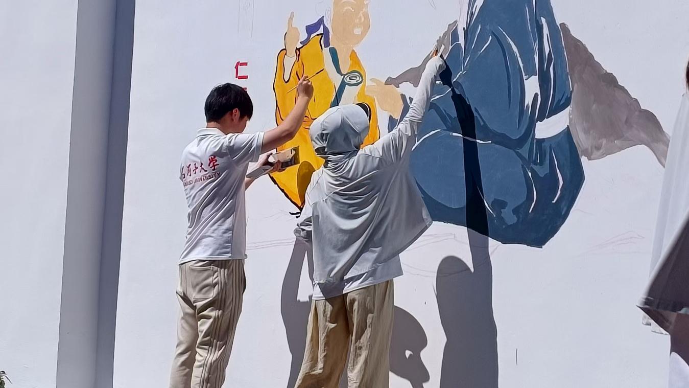 7月17日,新葡的京集团8814赴第六师奇台县奇台农场“同心同绘”中华文化传承社会实践团于农六师奇台农场进行一系列以“中华传统美德”为主题的墙绘制作实践。