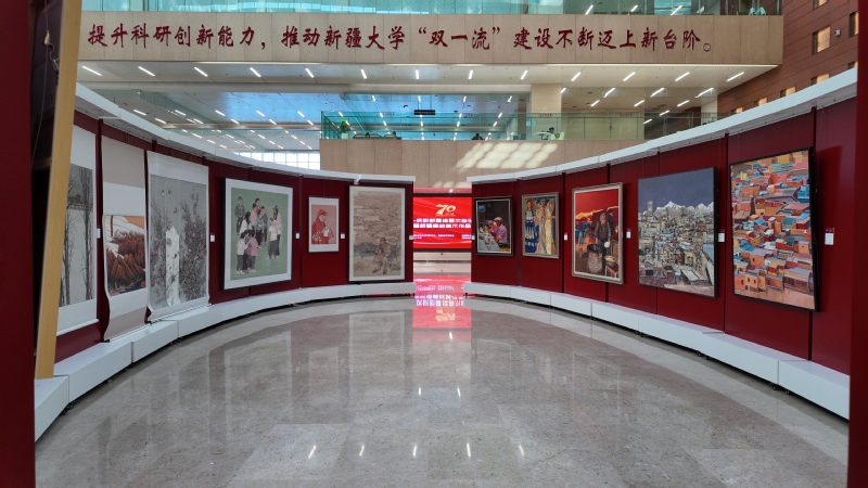 本次展览由新疆维吾尔自治区文学艺术界联合会、新疆美术家协会主办,新疆大学、石河子大学承办,旨在通过丹青画卷礼赞自治区辉煌历程,展现新疆高校美术教育丰硕成果。宋育果书记在讲话中表示,新疆大学与石河子大学作为边疆兄弟院校,长期在人才培养、文化艺术等领域紧密合作。他指出,美术作品展不仅镌刻了新疆70载辉煌印记,描绘了民族团结的和谐图景,更是新疆高校美术教育使命的生动体现——以美育人、以文化人,为新疆现代化建设注入艺术动能。新葡京官网愿与全疆高校一道,深化合作、共促文化繁荣。
