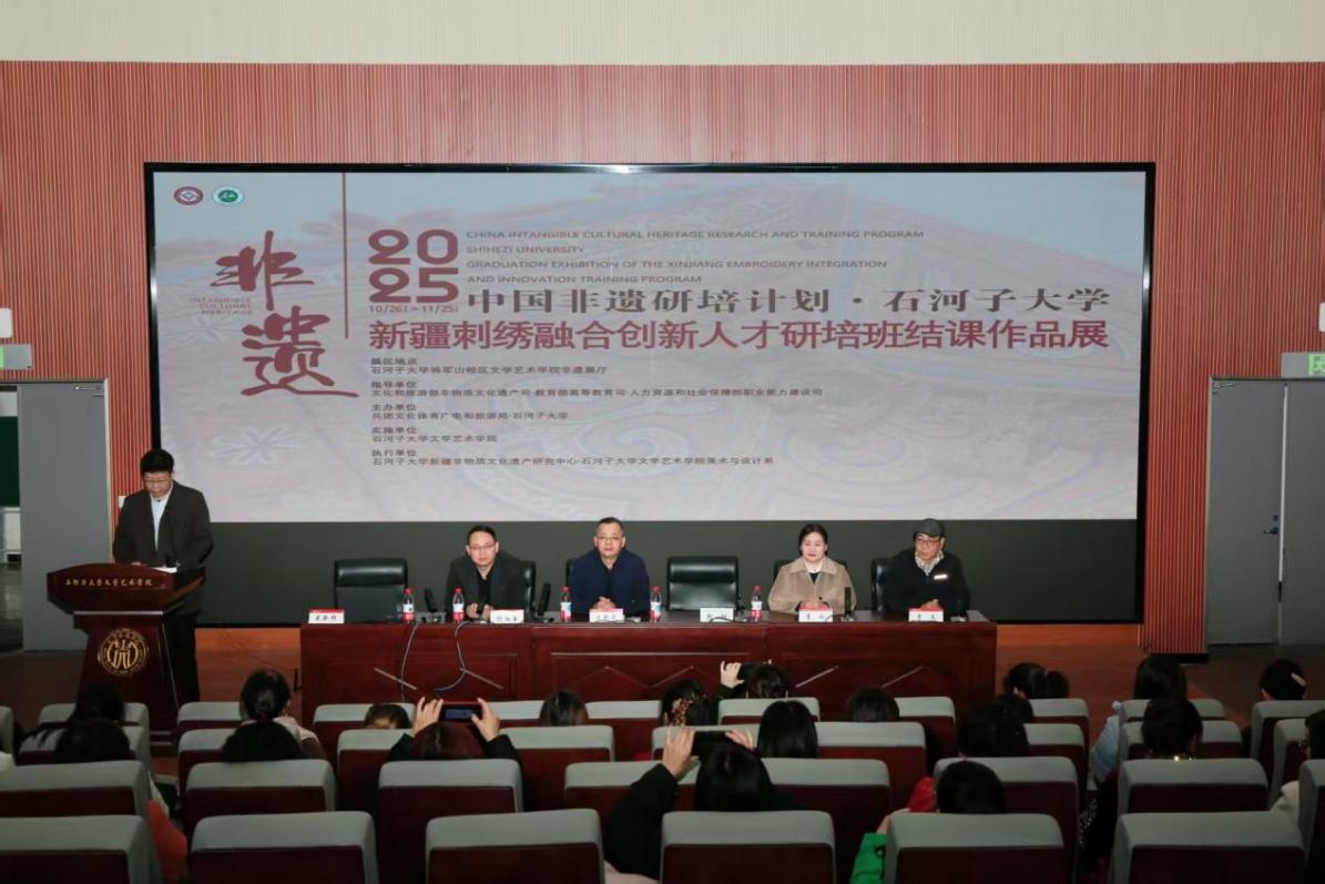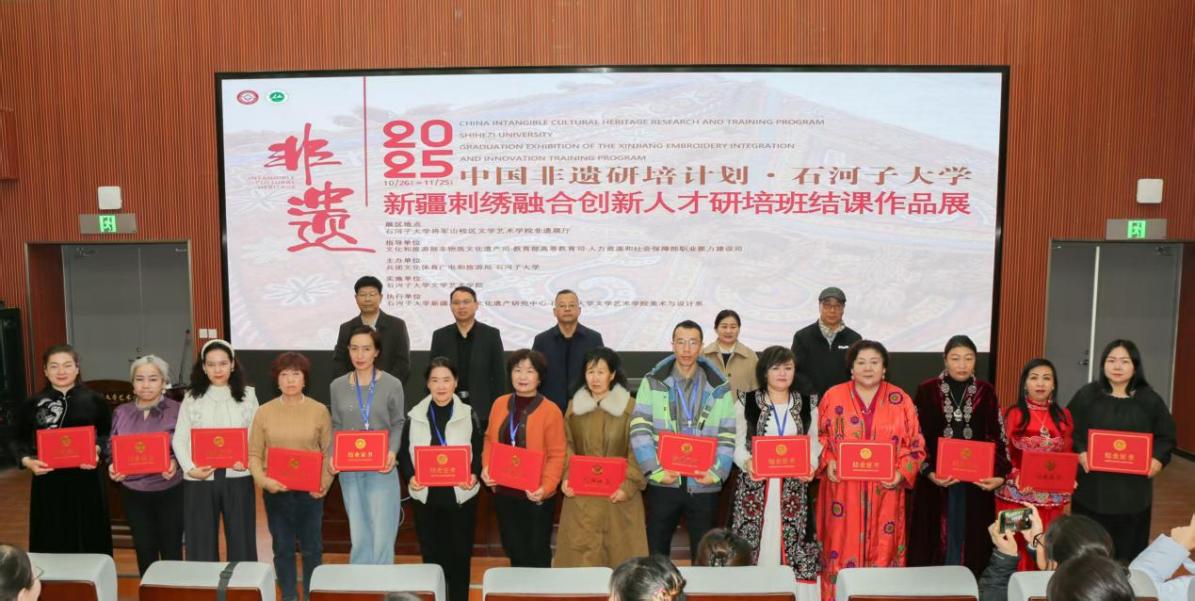 2025年11月25日上午,“石河子大学新疆刺绣融合创新人才研培班”结业典礼在新葡的京集团8814南山校区举行。牛新民、曹文等相关领导、研培班教师及全疆各民族刺绣传承人学员出席,吴新锋教授主持典礼。