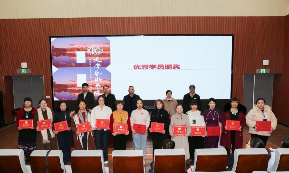 结业仪式氛围庄重热烈,与会领导为结业学员颁发证书,肯定大家在刺绣技艺与融合创新上的付出,学员们满脸喜悦与自豪;同时为表现突出的优秀学员授予荣誉证书,既嘉奖个人,也为全体学员树立榜样,激励大家将所学转化为动力,助力新疆刺绣传承发展。