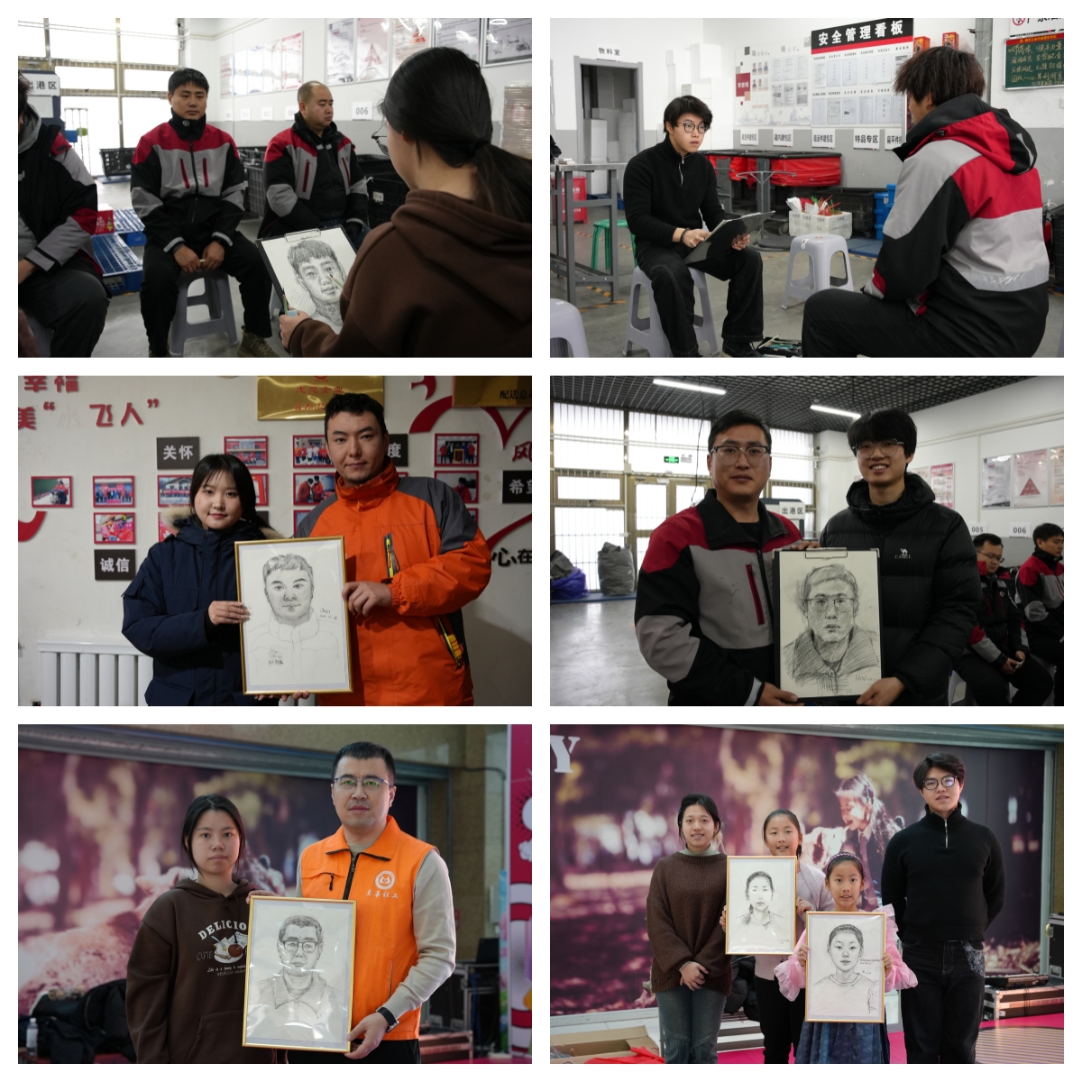 将画架从安静画室搬至繁忙的物流一线,这对学子们的观察力、快速造型能力及沟通共情能力提出了更高要求。2024级美术与书法专业学生范斌感慨:“这次活动让我们真切感受到,艺术能如此直接地传递温暖、连接人心。看到他们收到画像时的笑容,所有的付出都值得了。”