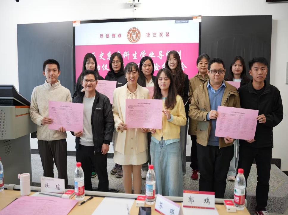 仪式由历史系党支部副书记郭瑞主持。郭瑞介绍,本科生学业导师制将推动历史教育从课堂向课外延伸,通过导师分组指导,实现师生共同成长。