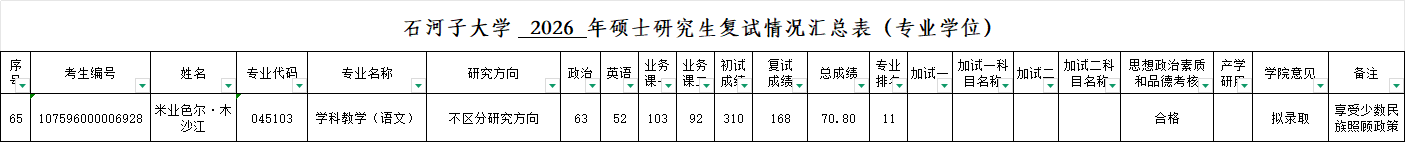 最终拟录取名单以石河子大学公示为准。